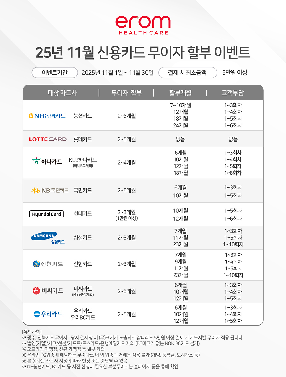 [2025년 11월] 신용카드 무이자 할부 이벤트