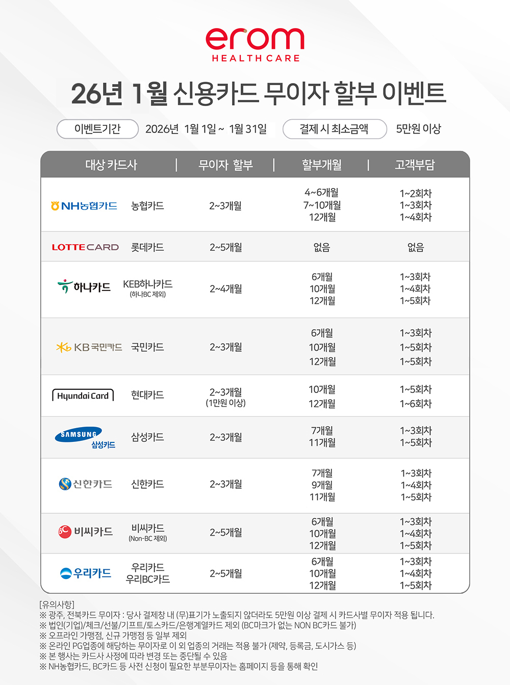 [2026년 1월] 신용카드 무이자 할부 이벤트
