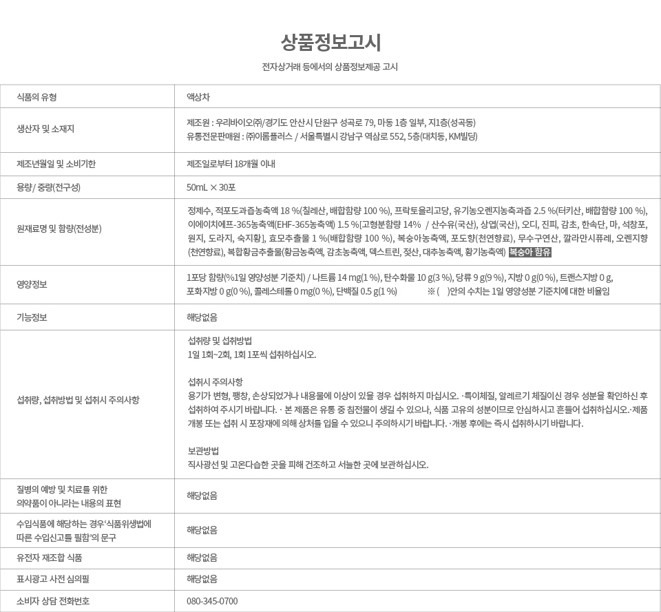 | 배송예정일 | 두유, 음료, 간식 카테고리의 평균 배송일은 2일이고, 생식, 건강지향식품, 건강기능식품, 화장품, 웰빙기기 카테고리의 평균 배송일은 3~5일입니다. (결제 완료 후) 배송예정일은 주문시점(주문순서)에 따른 유동성이 발생하므로 평균 배송일과는 차이가 발생할 수 있습니다. |