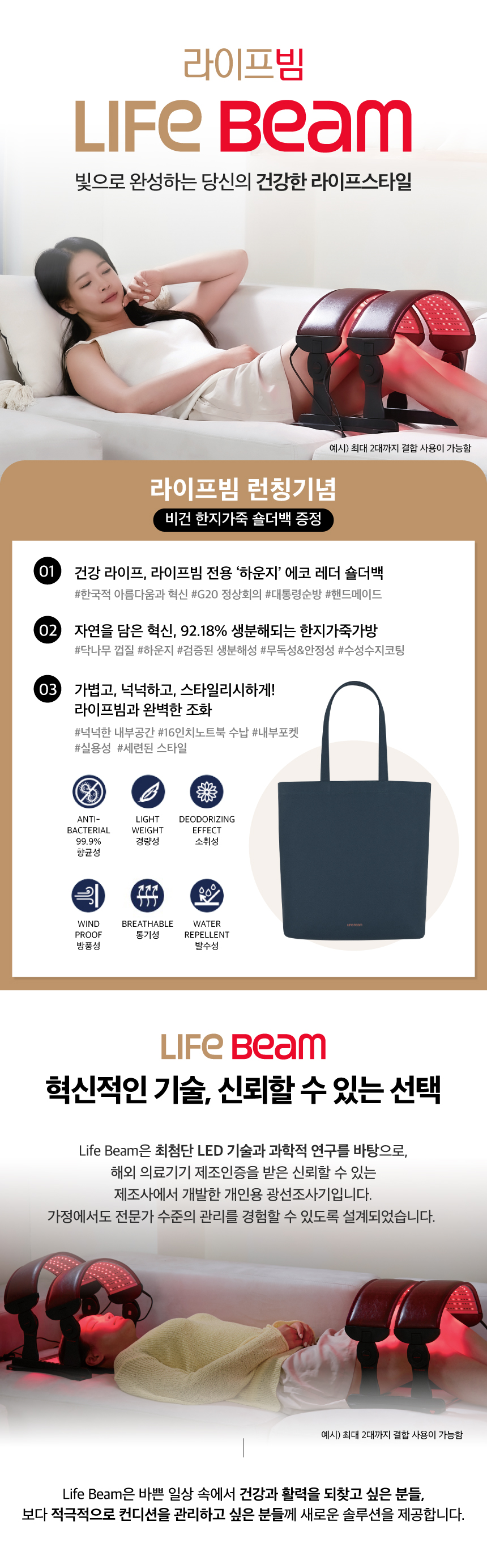 현재 포장 박스와 브로셔는 ‘라이프빔’ 으로 변경되어 발송되며, 제품의 명칭만 변경된 동일한 상품이오니 참고 부탁 드립니다.