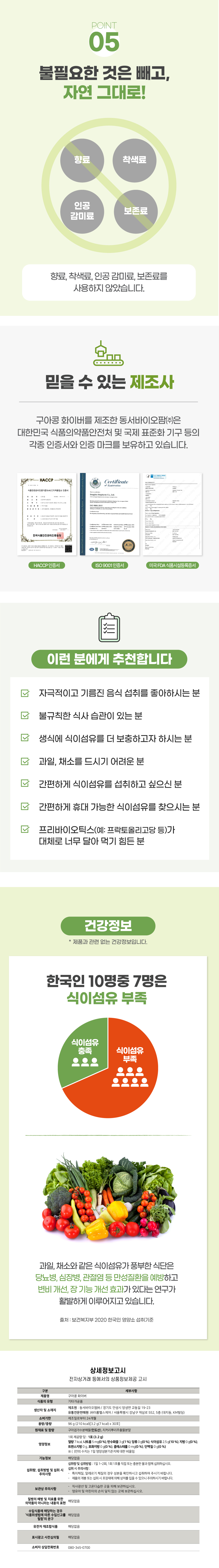 | 배송예정일 | 두유, 음료, 간식 카테고리의 평균 배송일은 2일이고, 생식, 건강지향식품, 건강기능식품, 화장품, 웰빙기기 카테고리의 평균 배송일은 3~5일입니다. (결제 완료 후) 배송예정일은 주문시점(주문순서)에 따른 유동성이 발생하므로 평균 배송일과는 차이가 발생할 수 있습니다. |
